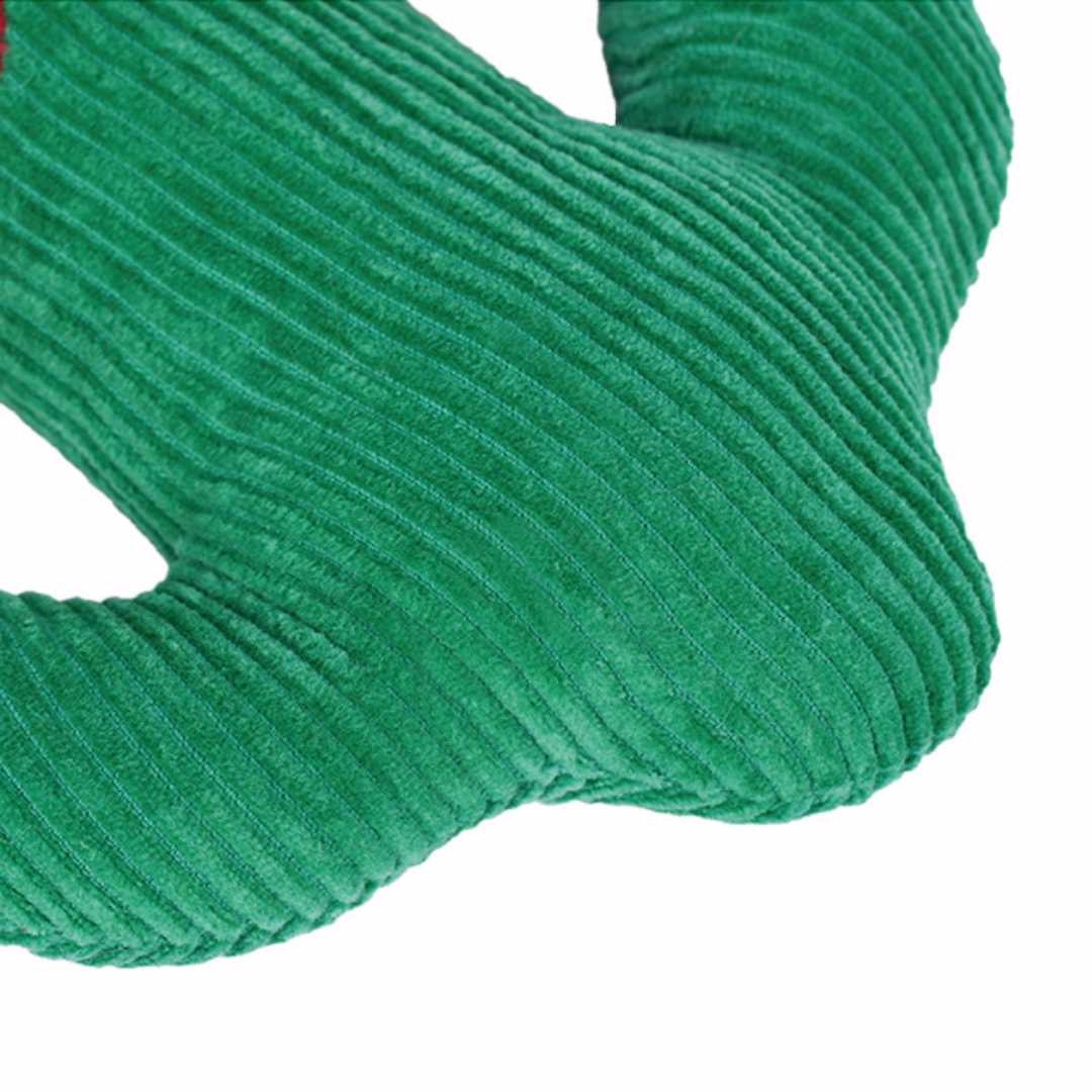 Wild and wacky plush toy that comes in the shape of a red flower.