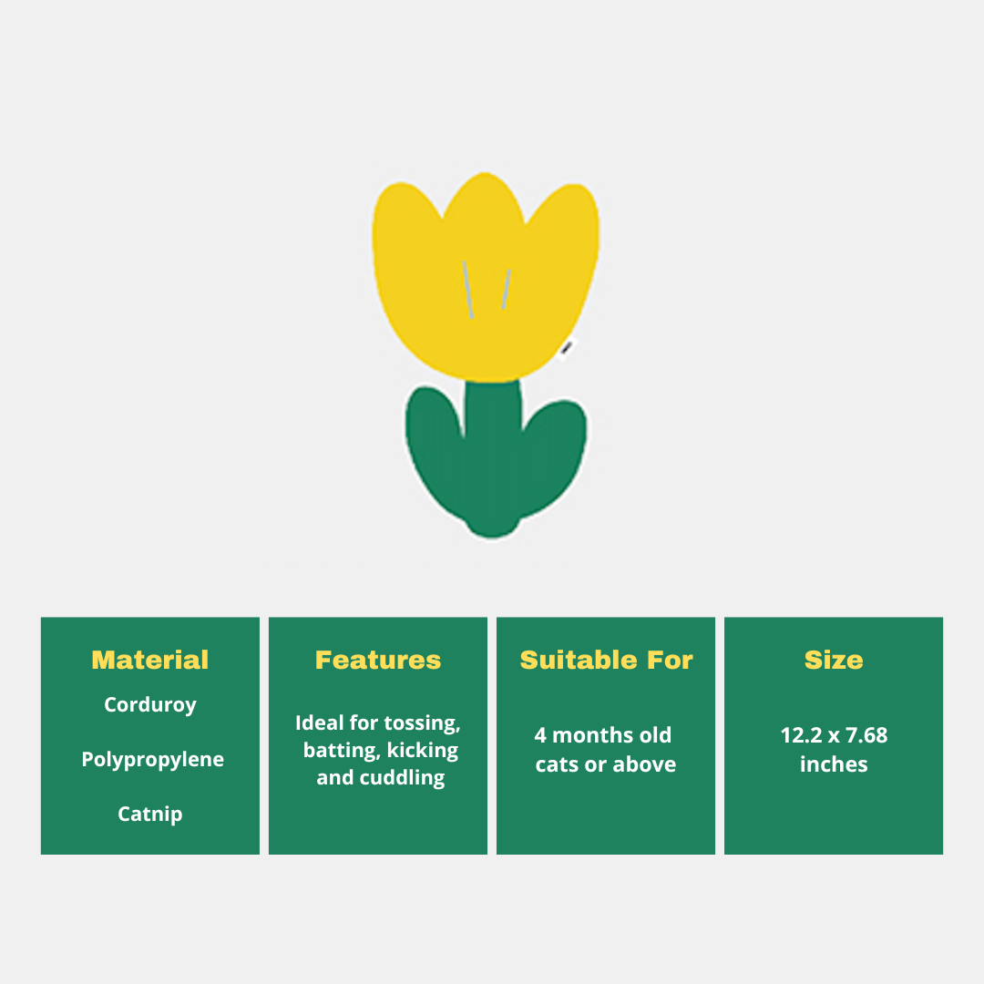 Give your furry friend a wild and wacky plaything with the Yellow Flower Catnip Cat Toy. This toy is filled with a unique blend of premium catnip to entice your kitty to play. The catnip is pure and pesticide-free for the safety of your paw-tner. This toy also features multiple textures to enhance playtime for your companion. Ideal for tossing, batting, kicking and cuddling, Yellow Flower Catnip Cat Toy will keep your cat occupied for hours to come.